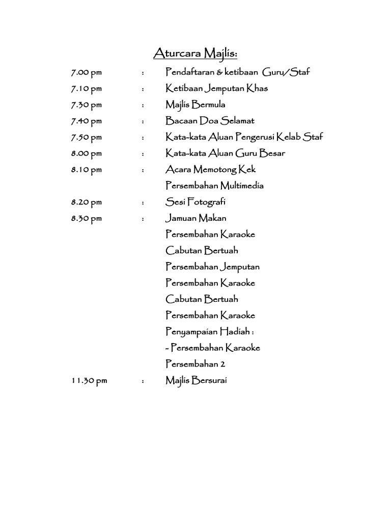 Aturcara Majlis Makan Malam Pdf